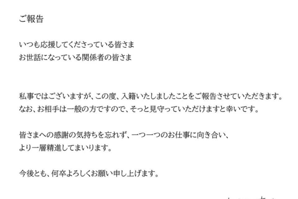 元旦假期还没过完,内娱猛地冒出一个“嫂子”连夜放料,引得许多男星纷纷发声明回应。目前“嫂子”还没有进一步放料,粉丝们还在吃瓜中。而隔壁的日本,就主打一个结婚路线,过年了,许多明星纷纷宣布结婚,包括长泽雅美等。而35岁的日本男明星本乡奏多,也在1月1日宣布结婚,对象是圈外女性。